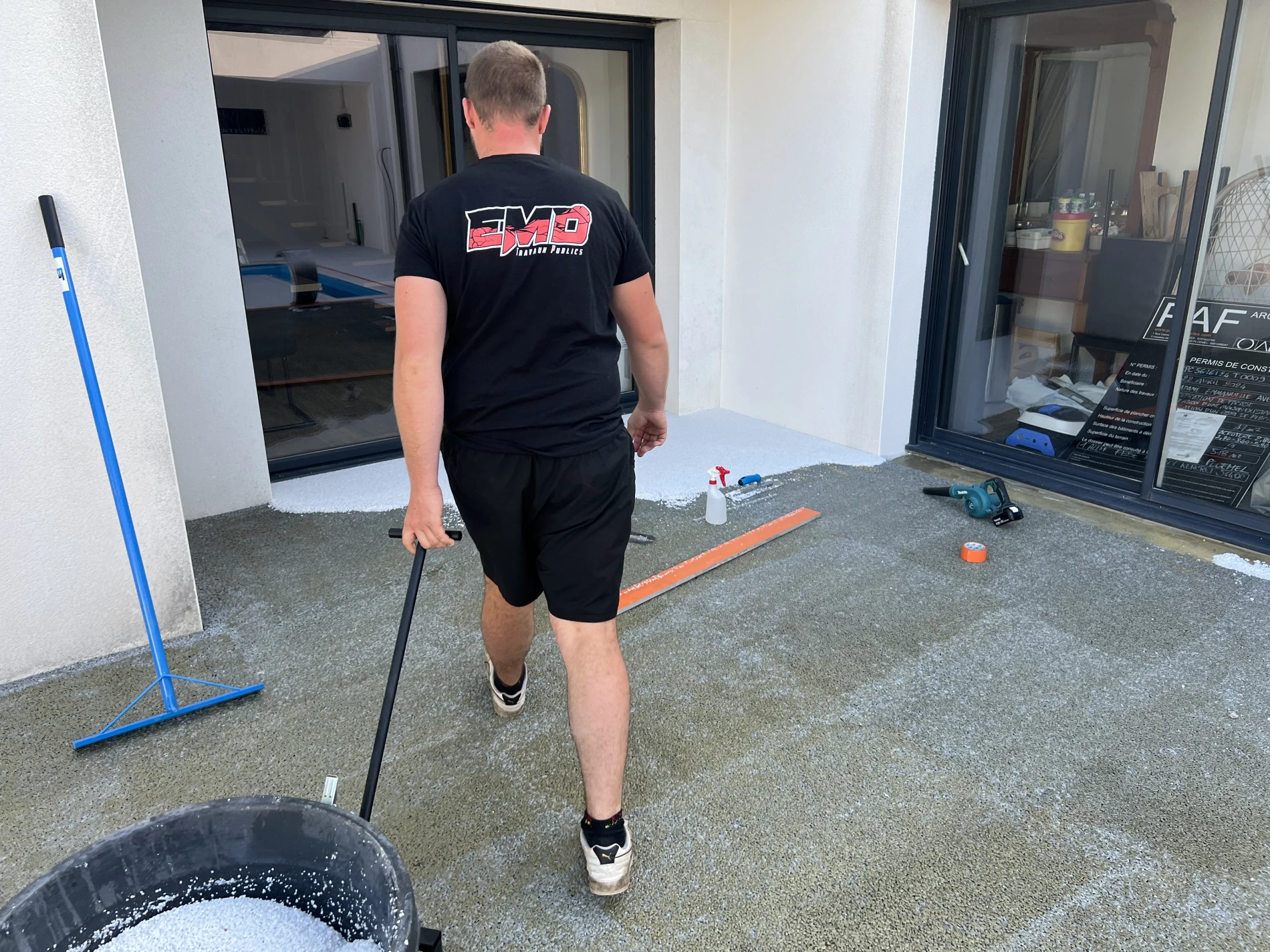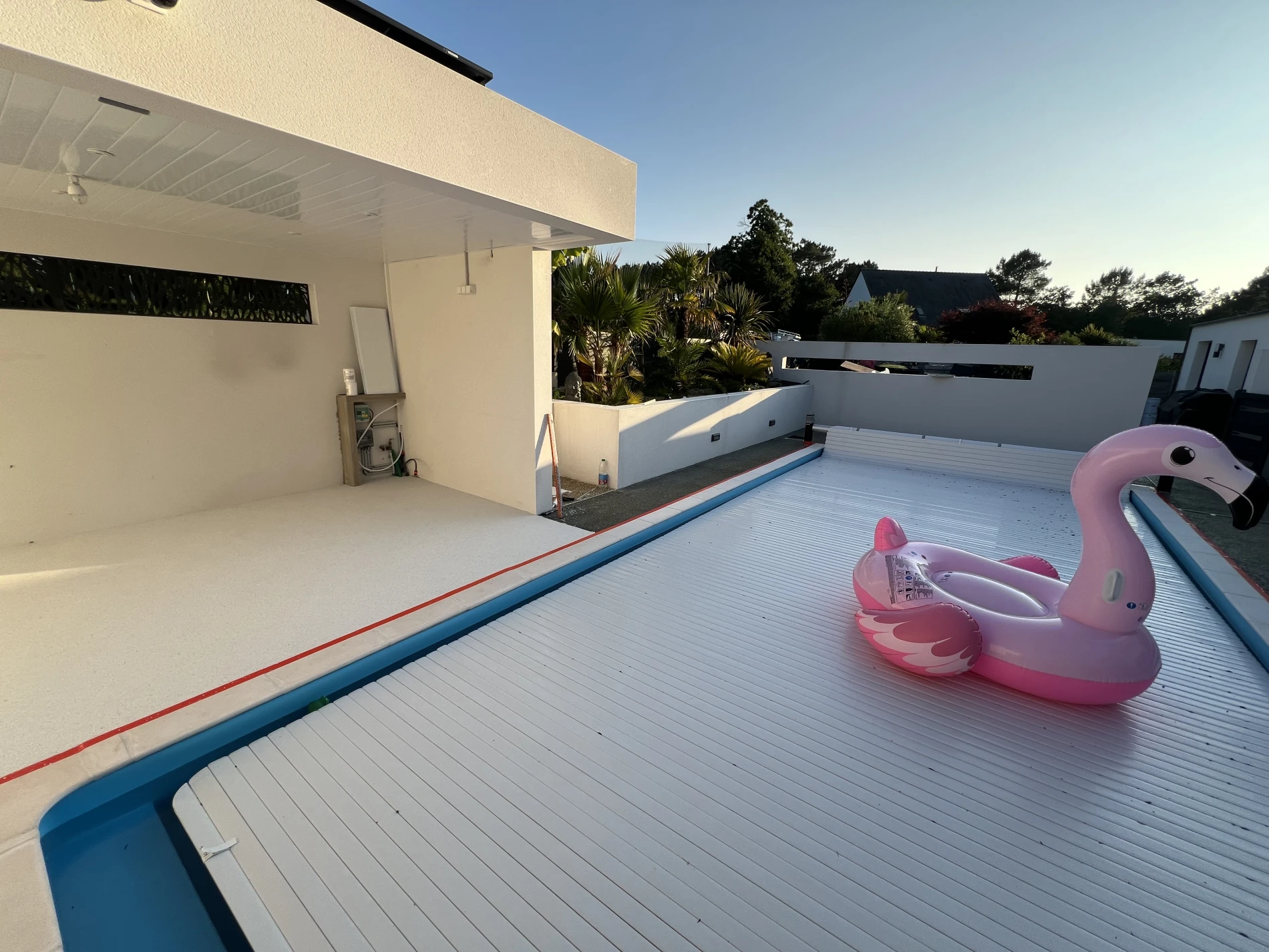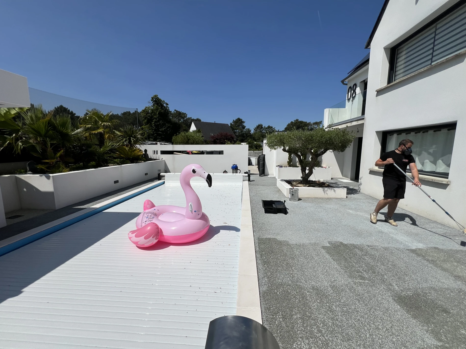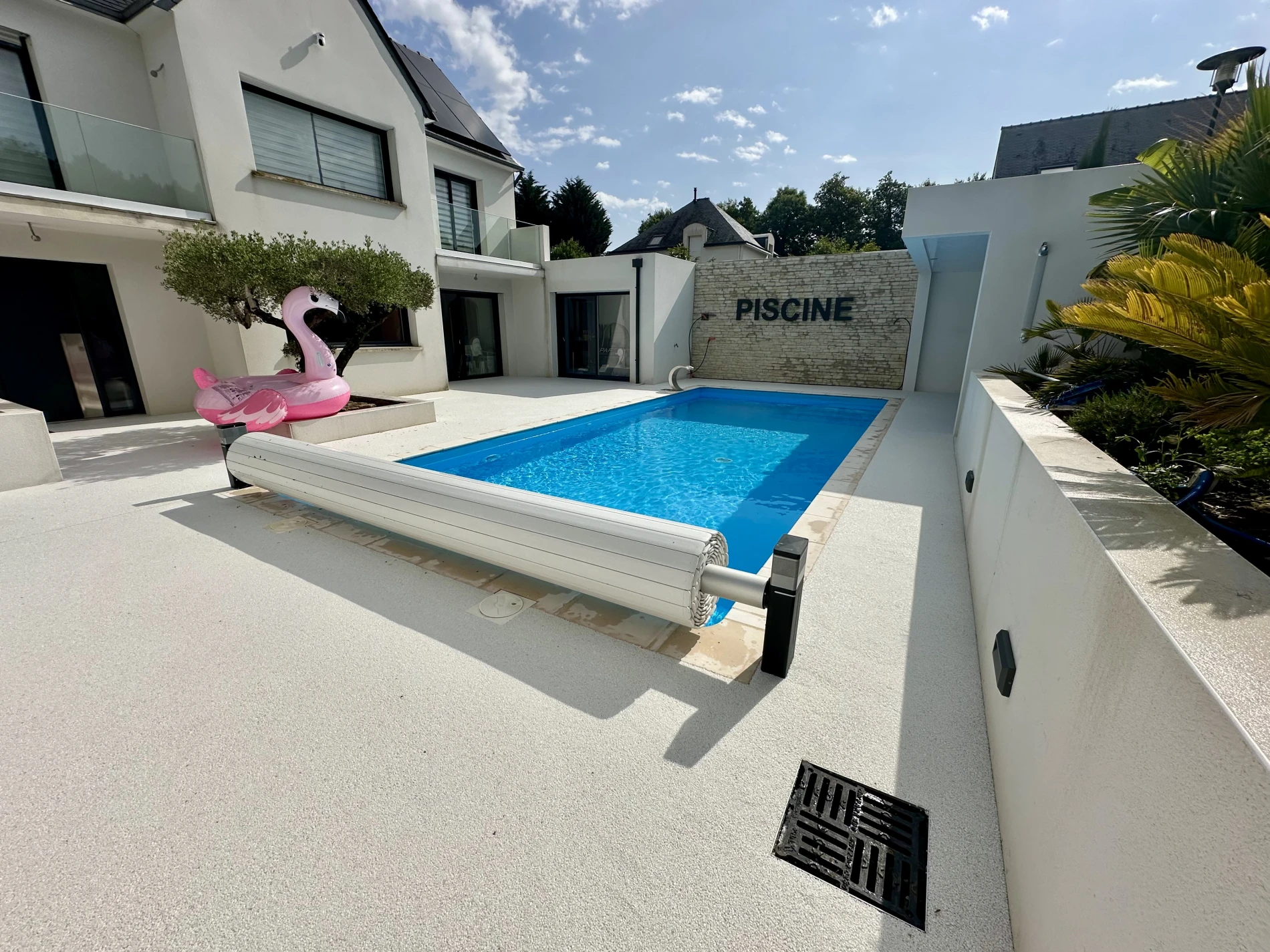 Revêtement piscine moquette de pierre Ploemel Moquette de pierre THASSOS au tour d'une piscine a PLOEMEL